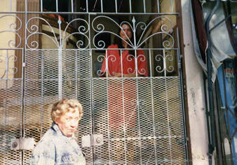 ![]() Quinten Bashaw (behind gate) at his Height-Ashbury pad with family friend Phyllis Spurlock San Francisco, California - 1994 |